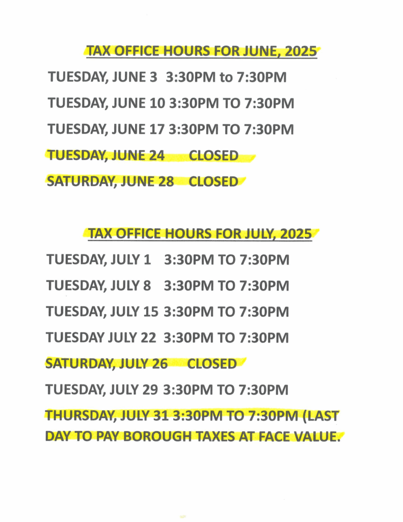 Tax Collector Hours June and July 2025